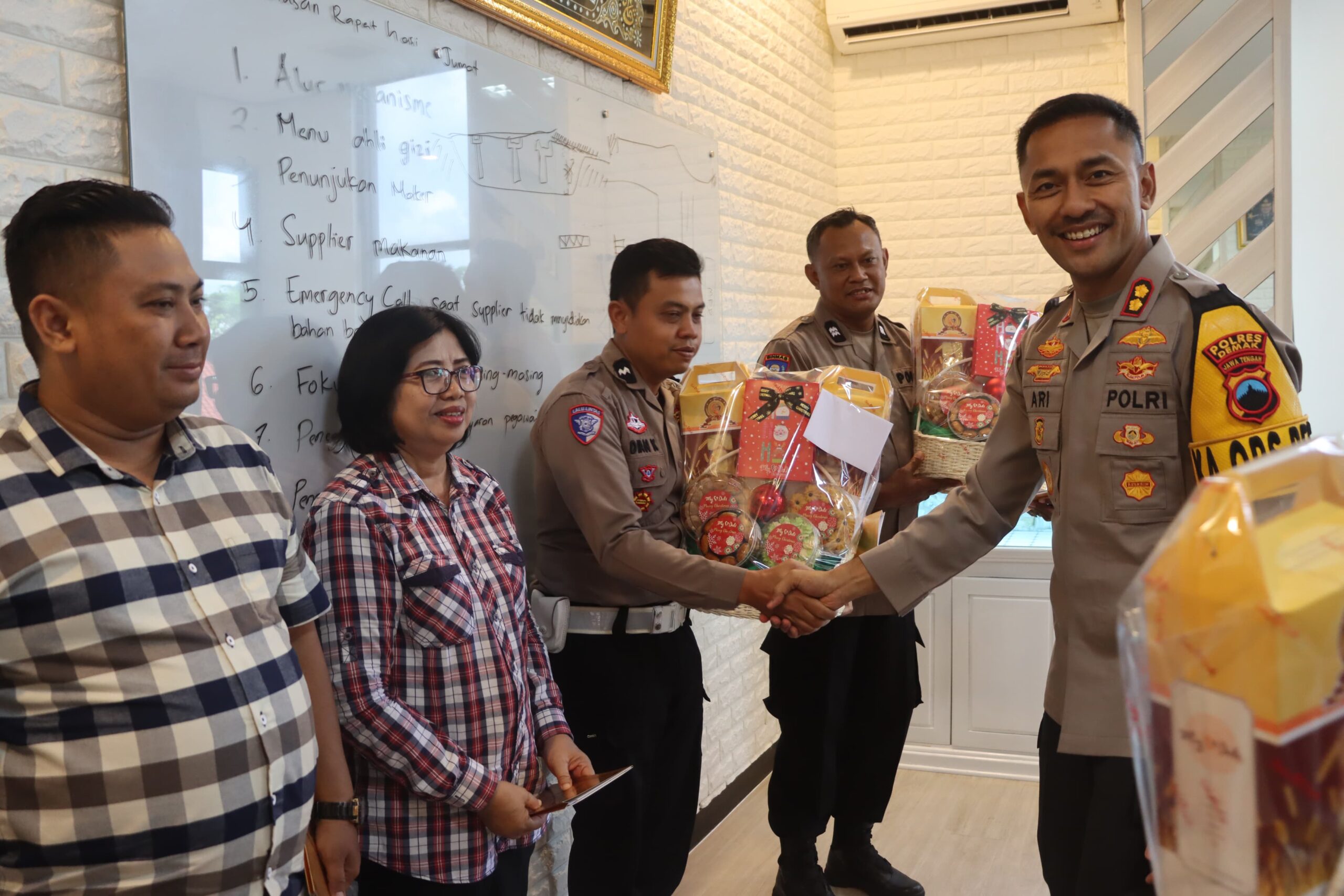DEMAK – Kapolres Demak AKBP Ari Cahya Nugraha berbagi kebahagiaan dengan anggota Polres Demak yang beragama Kristen sebagai wujud perhatian pimpinan sekaligus komitmen Polri dalam menjaga toleransi dan kebersamaan di lingkungan Kepolisian.
