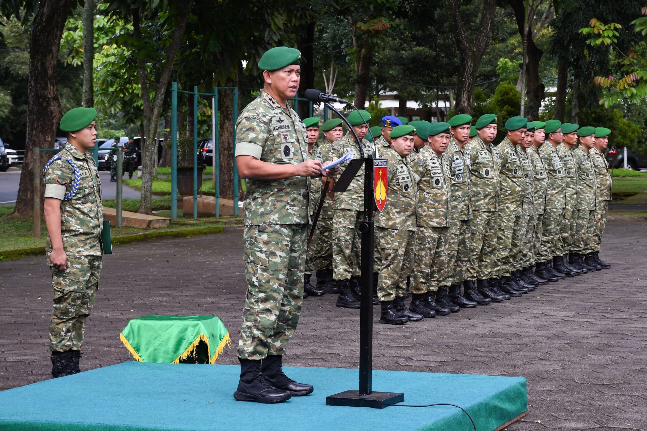 “Fasilitas yang diberikan negara ini merupakan bentuk kepercayaan yang harus kita jawab dengan peningkatan profesionalisme, disiplin, dan kinerja terbaik dalam melaksanakan tugas pertahanan negara,” tegas Pangdam di hadapan para perwira dan personel yang mengikuti upacara.
