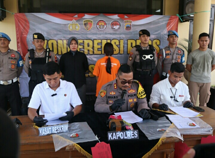 Didampingi Kasatreskrim AKP Dwi Atma Yofi Wirabrata, Kapolres membeberkan hasil penyidikan yang mengarah pada praktik penghimpunan dana tanpa legalitas dan janji keuntungan tidak wajar.