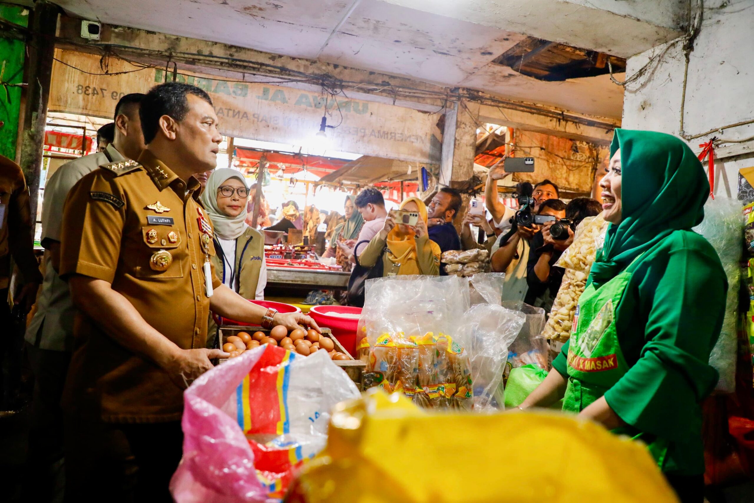 Gubernur menyusuri lorong pasar yang padat sembari menyapa warga dan pedagang. Mereka auto curhat tenteng harga-harga komoditas yang merangkak naik.
