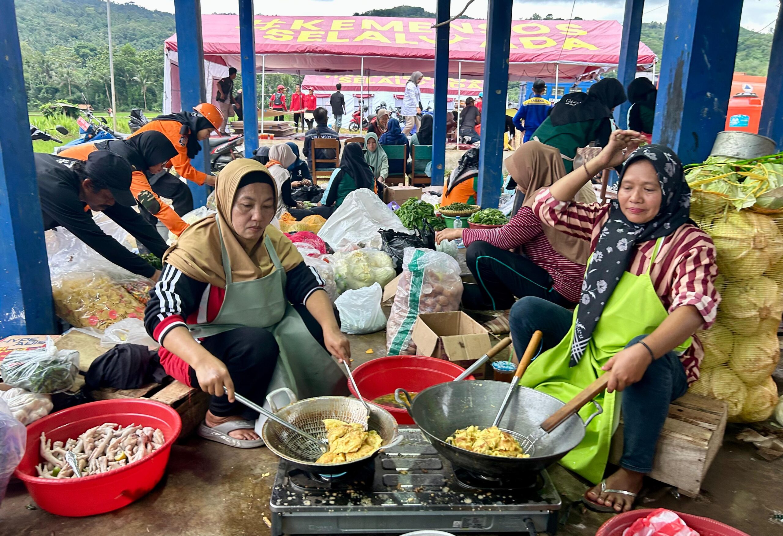 CILACAP – Kebutuhan makan dan minum bagi pengungsi maupun petugas dan relawan di lokasi longsor Desa Cibeunying, Kecamatan Majenang, Kabupaten Cilacap, dipastikan tercukupi. Dapur umum Dinas Sosial (Dinsos) beroperasi 24 jam dan menyediakan ribuan paket makanan setiap harinya.